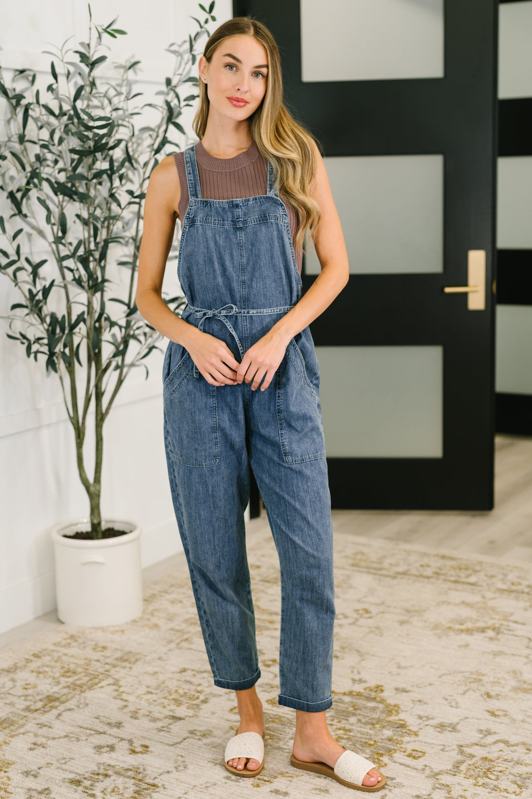 Too Cute to Compute Waist Tie Overalls in Dark Blue