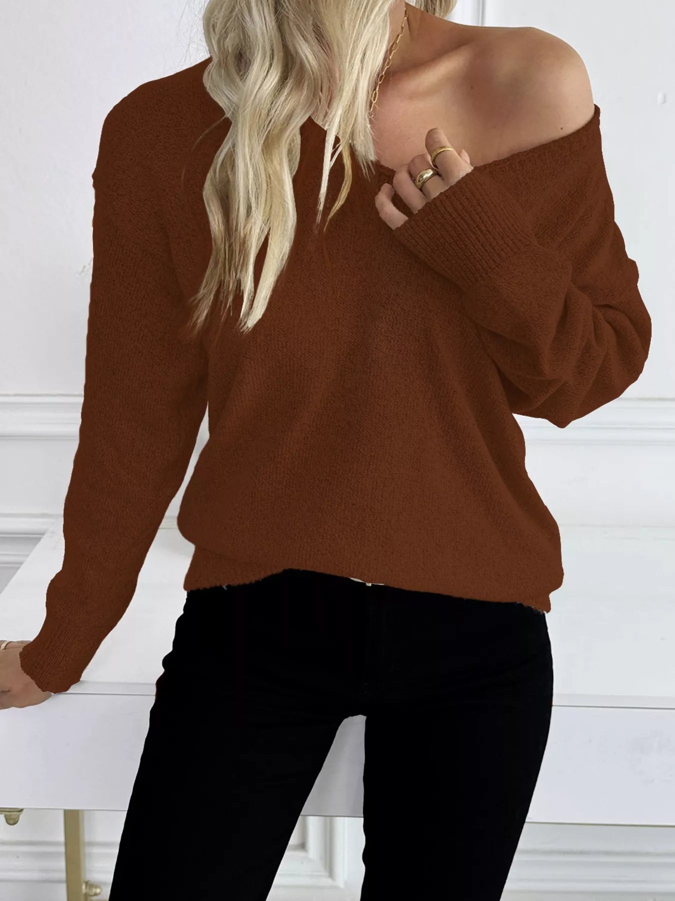 PRE-ORDER: Casual V-Neck Drop Shoulder Sweater