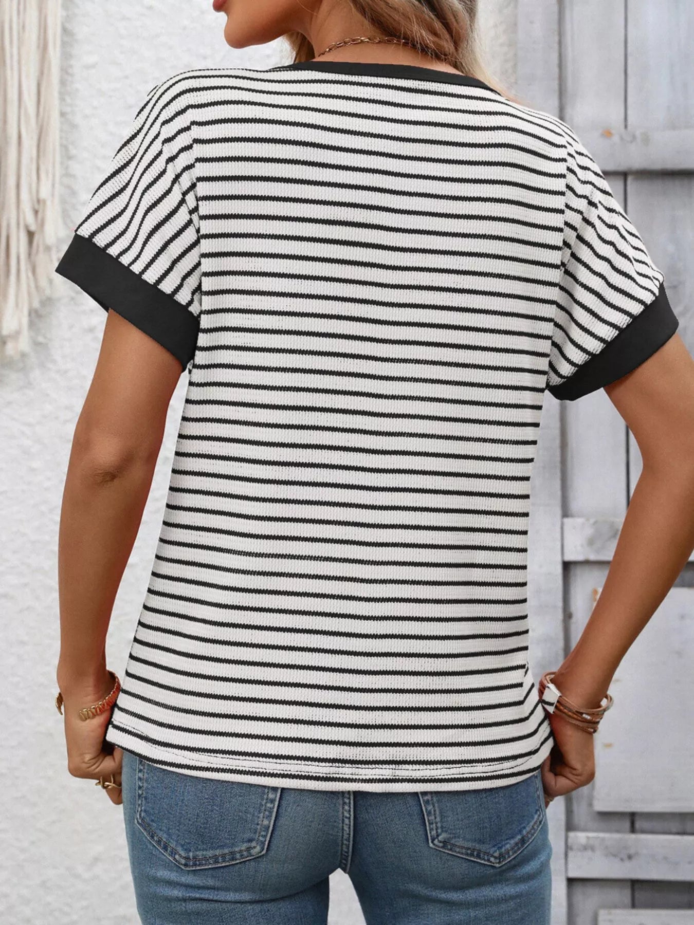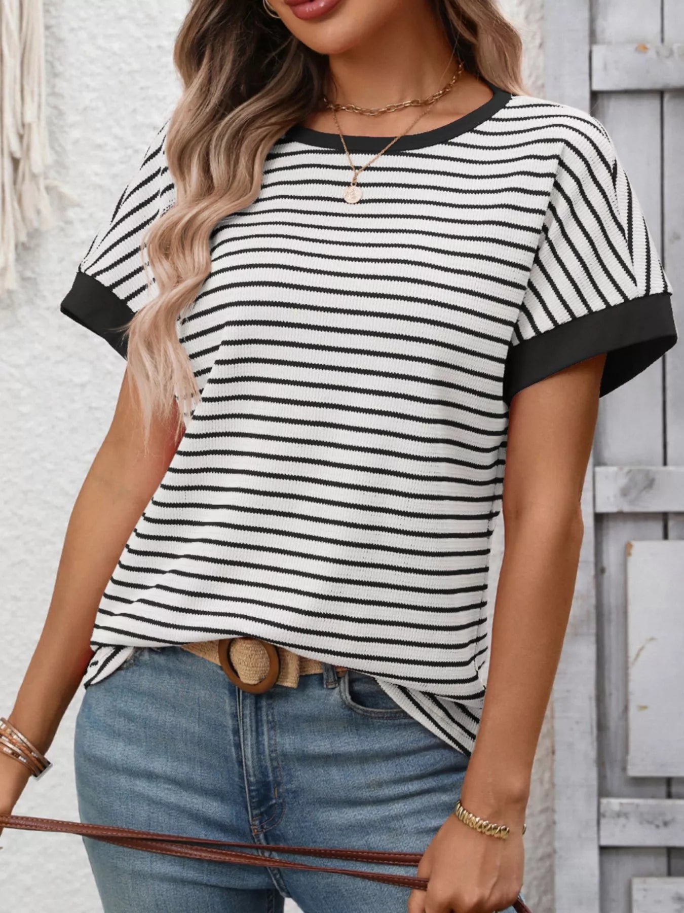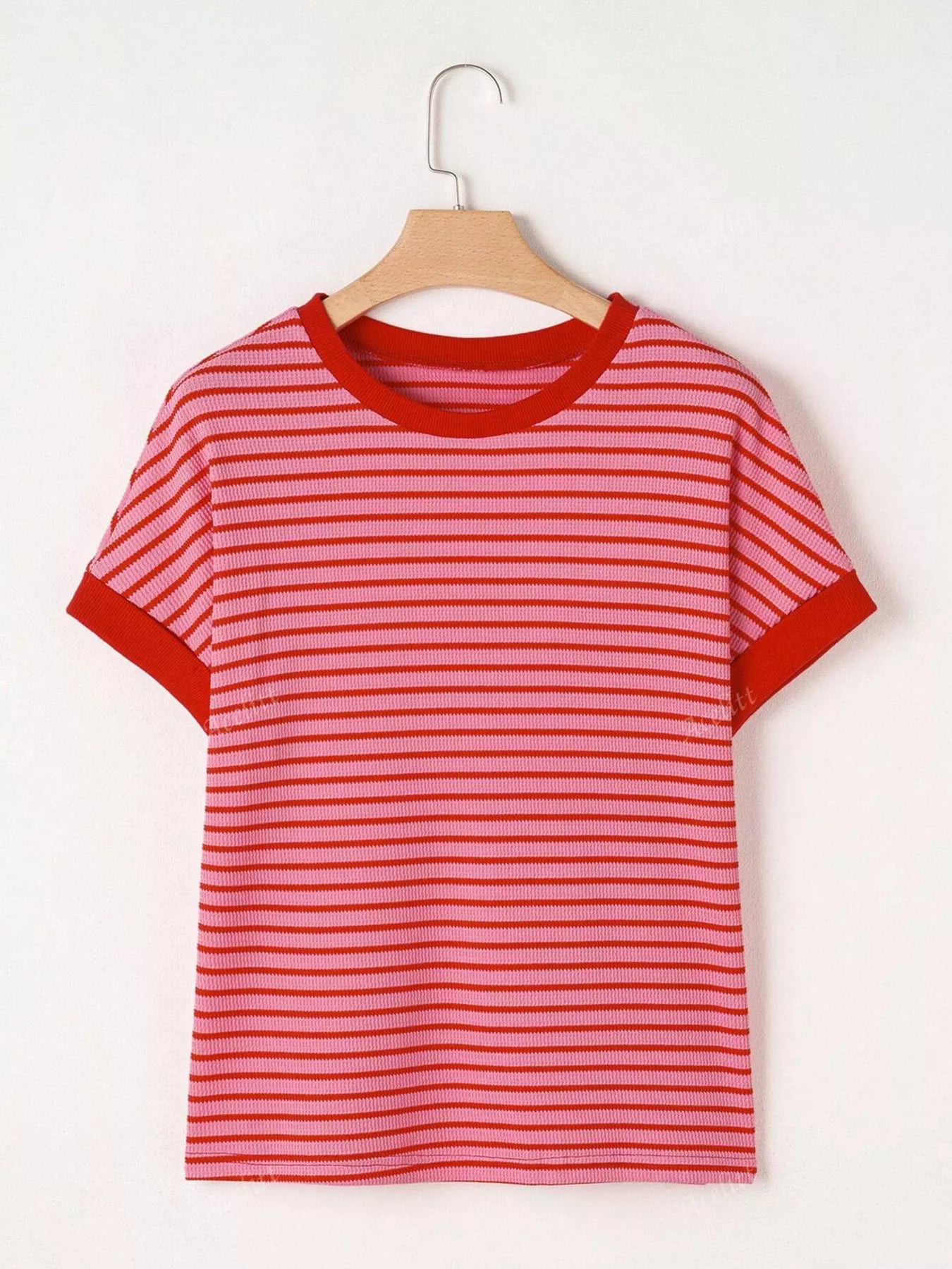 PRE-ORDER: Striped Ribbed Knit Short Sleeve T-Shirt