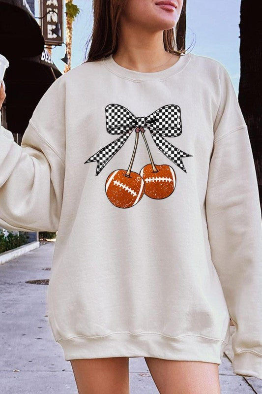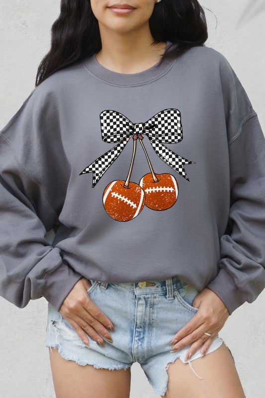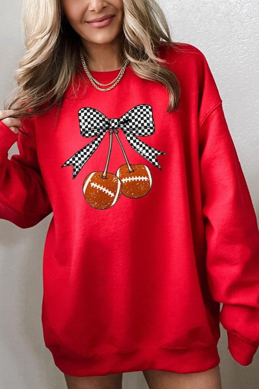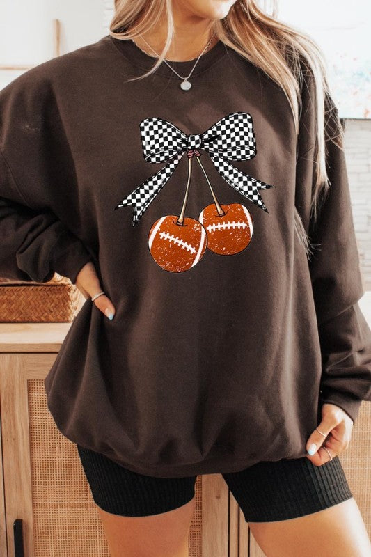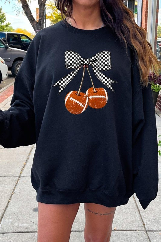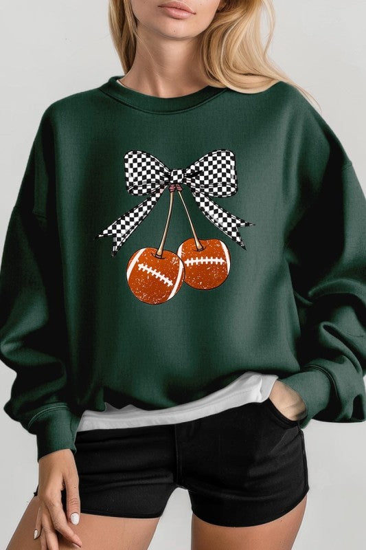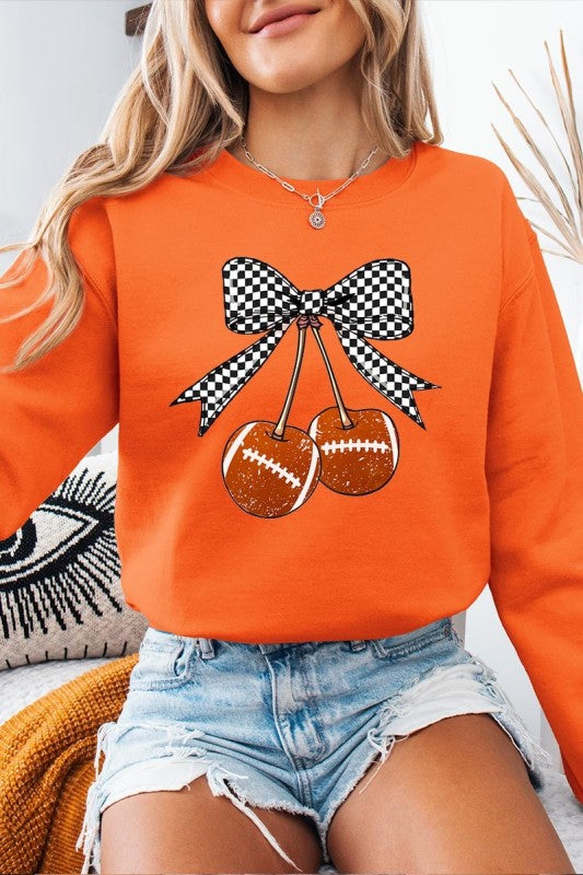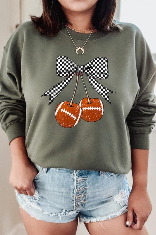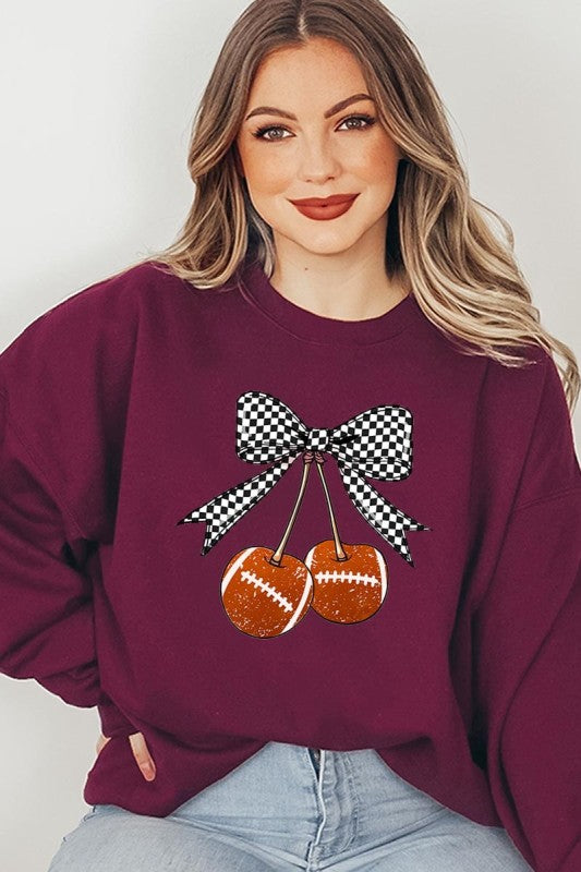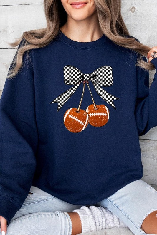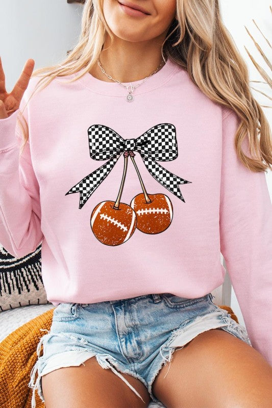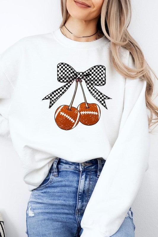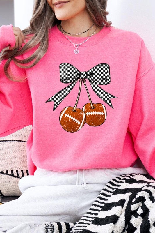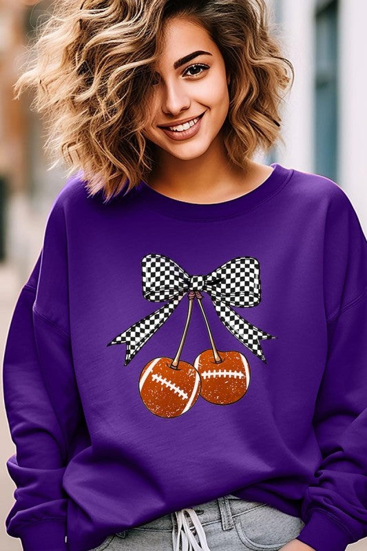 Checkered Football Cherries, Game day shirt, Game day shirt, Girly football, Football season, Touchdown graphic tee, Fall football Graphic Fleece Sweatshirt.