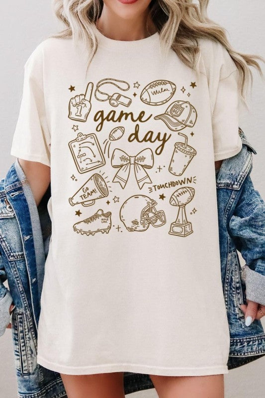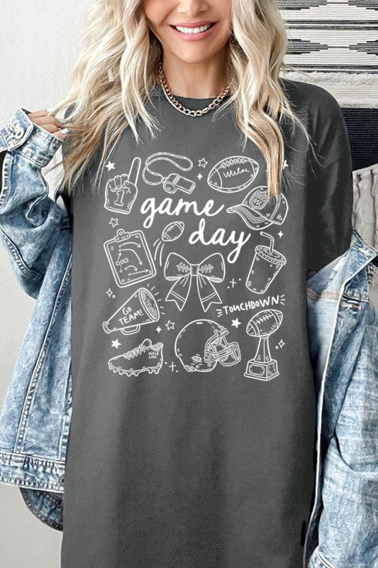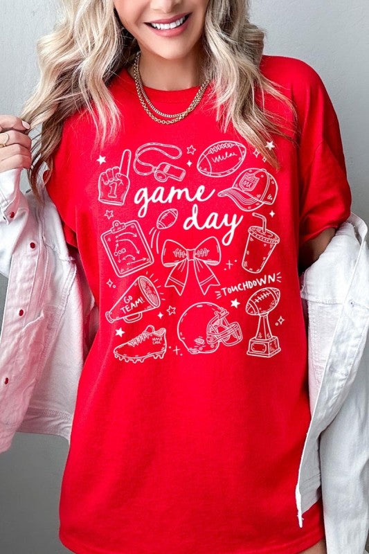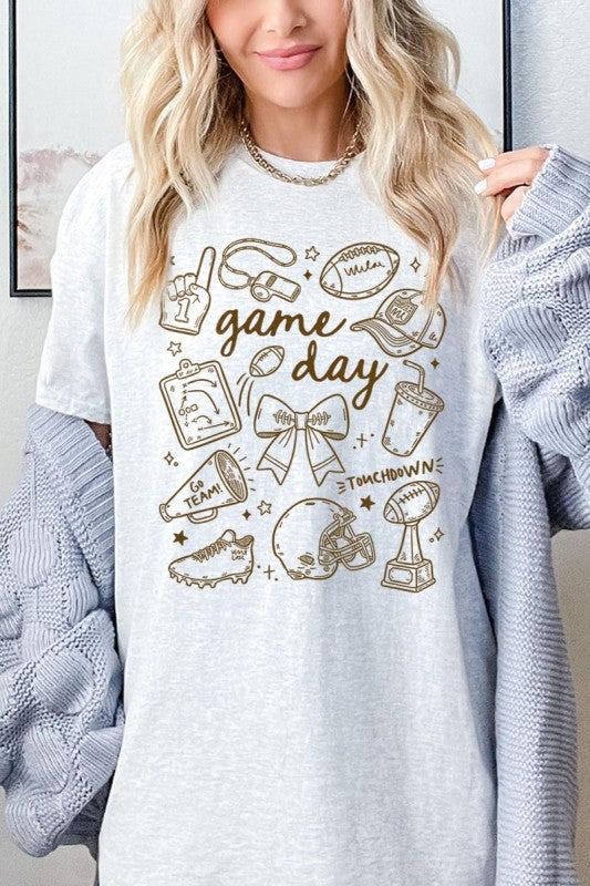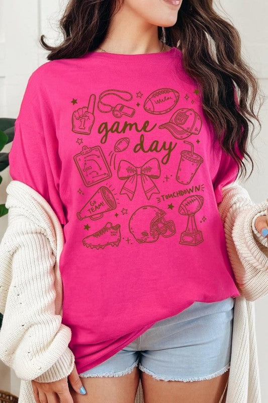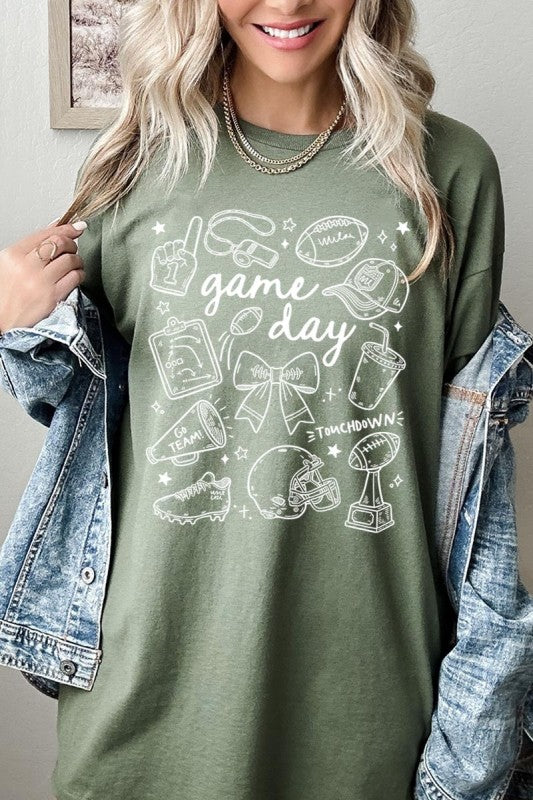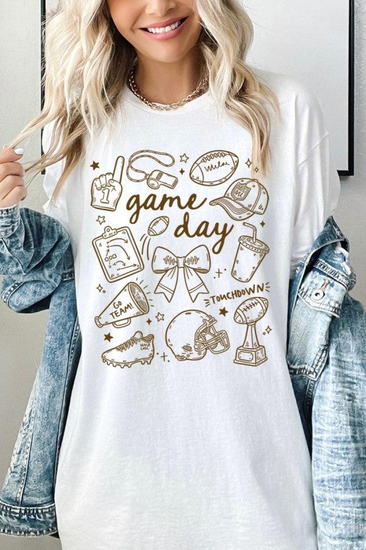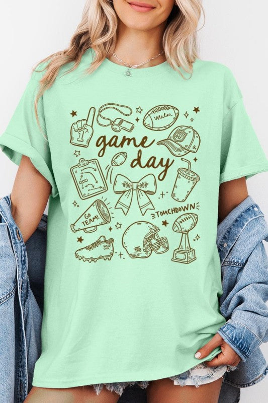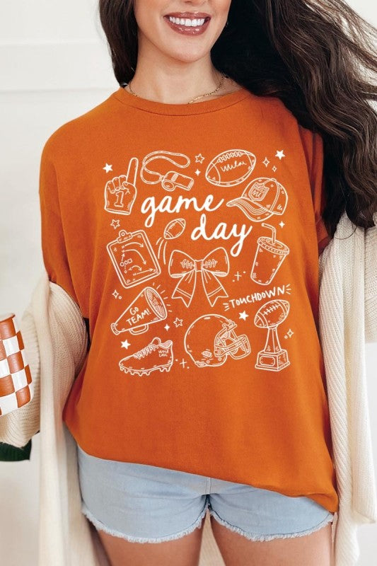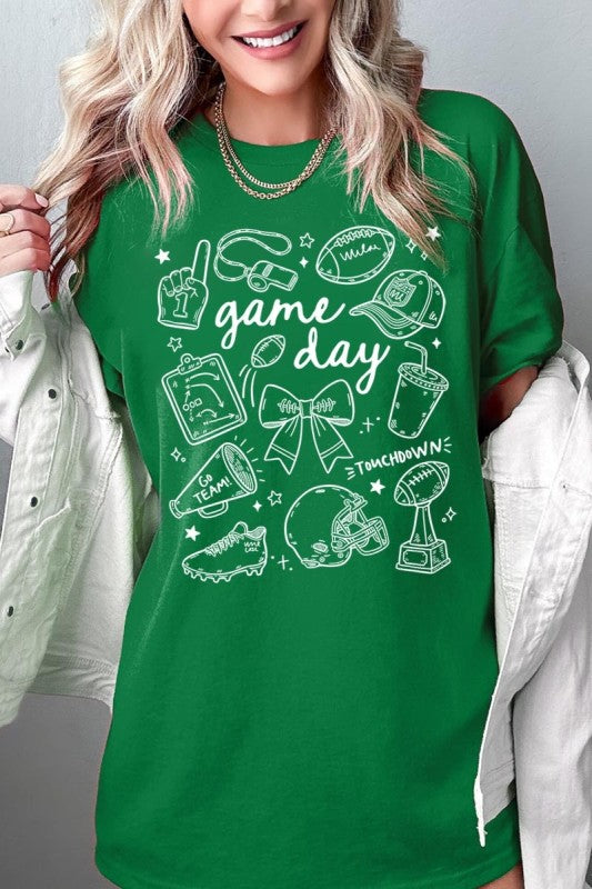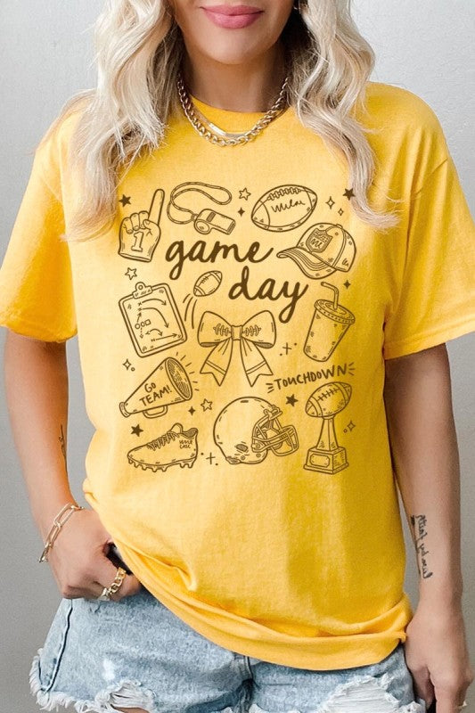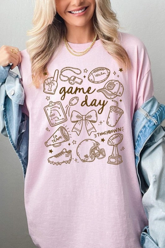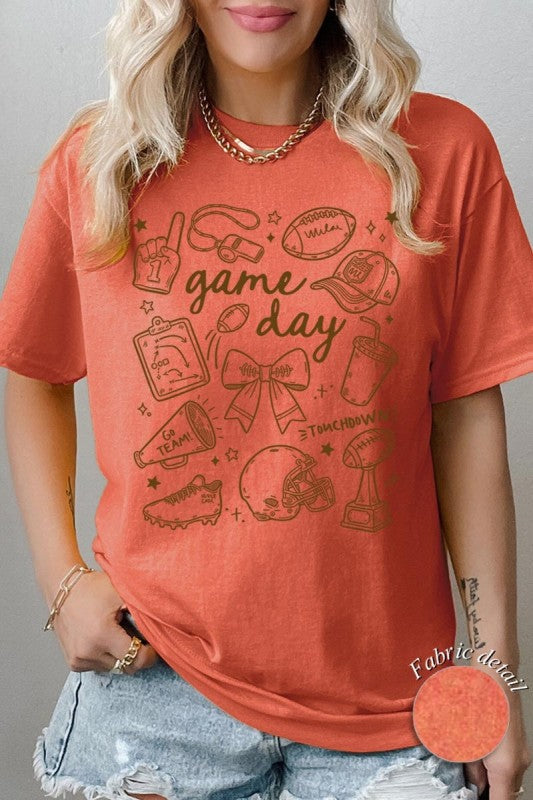 Game day tee, football graphic, cute sportswear, tailgate Graphic Heavy Cotton Tee.