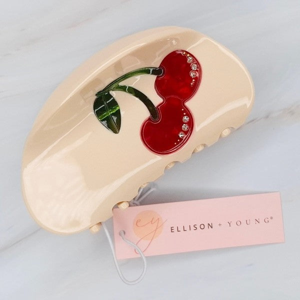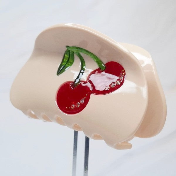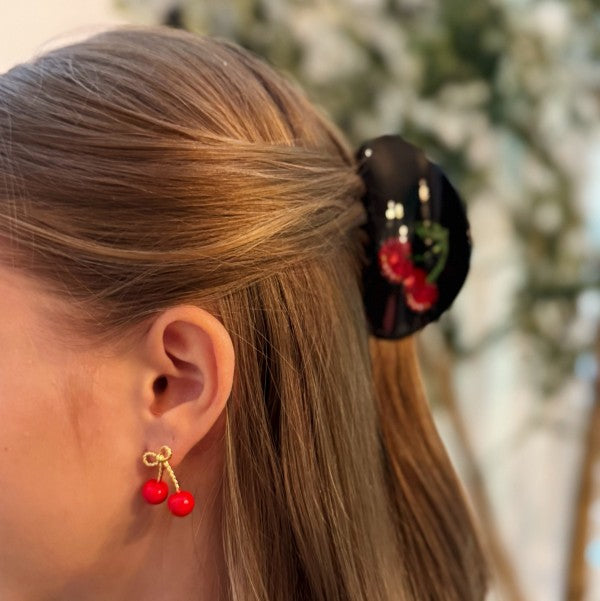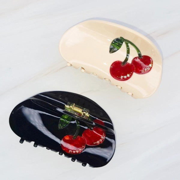 Bring a burst of charm to your hair with the Fresh Cut Cherries Hair Claw. Featuring an adorable cherry design and a glossy finish, this playful accessory adds a fruity pop to any hairstyle while offering a strong, secure hold.
